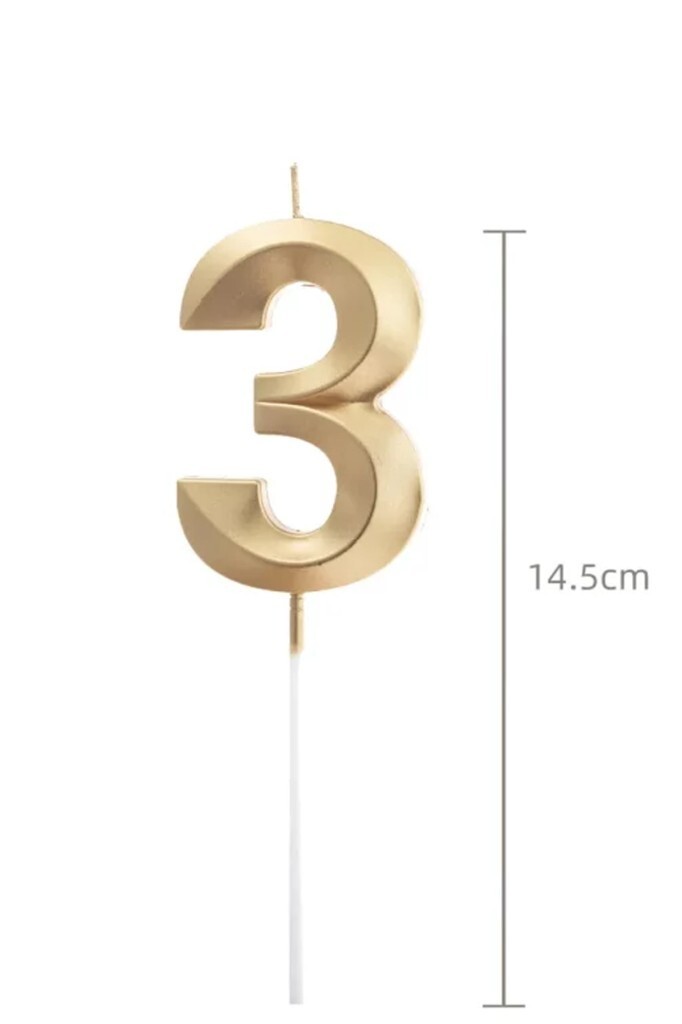 Beysüs Altın Rengi 3 Rakam Pasta Mumu 14.5 cm boyutunda, şık altın renginde pasta üstü rakam mum. Özel günlerde, doğum günü kutlamalarınızda veya diğer özel etkinliklerinizde pasta süslemelerinizin vazgeçilmezi olacak. Zarif altın rengi, pasta üzerindeki tasarımı vurgularken, modern ve şık bir görünüm sunar. Kullanımı kolay olan bu mum, kutlamalarınıza zarif bir dokunuş katar. Hem estetik hem de işlevsel bir ürün arayanlar için mükemmel bir seçenek.