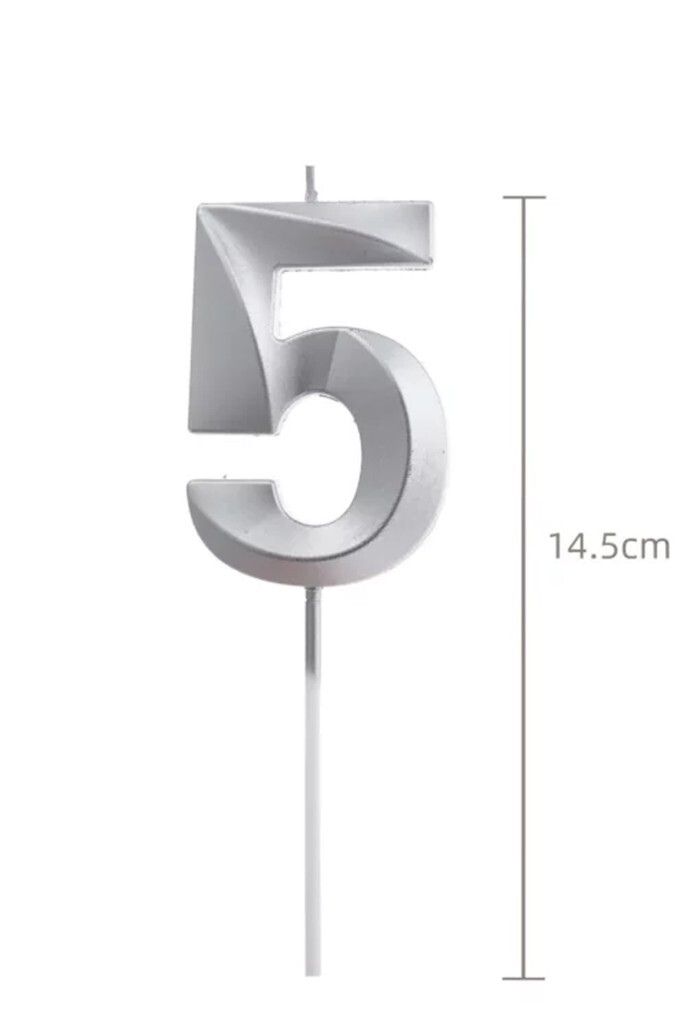 Beysüs Gümüş Rengi 5 Rakam Pasta Mumu 14.5 cm boyutunda, şık gümüş renginde pasta üstü rakam mum. Özel günlerde, doğum günü kutlamalarınızda veya diğer özel etkinliklerinizde pasta süslemelerinizin vazgeçilmezi olacak. Zarif gümüş rengi, pasta üzerindeki tasarımı vurgularken, modern ve şık bir görünüm sunar. Kullanımı kolay olan bu mum, kutlamalarınıza zarif bir dokunuş katar. Hem estetik hem de işlevsel bir ürün arayanlar için mükemmel bir seçenek.