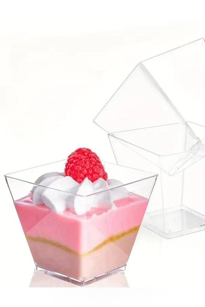 Beysüs Kübik Prizma Kase Mika Plastik Şeffaf Kapaklı Sunum Kabı 8 li 120 CC Şeffaf ve kübik tasarımıyla modern bir görünüm sunan 8'li Kase seti, tatlı, dondurma, salata, meyve salatası ve çerezler gibi ikramlarınızı şık bir şekilde sunmanız için normaldir. Sağlam ve kaliteli malzemeden üretilmiştir, hafif yapısı sayesinde kolay taşınabilir ve tekrar kullanılabilir özelliktedir. Kolay temizlenebilir ve hijyenik olan bu 8 parçalık set, sofralarınıza zarif bir dokunuş katmak için mükemmel bir seçim. Doğum günü, söz, nişan, mevlüt, ve diğer tüm etkinliklerinizin vazgeçilmez bir parçası olacaktır.