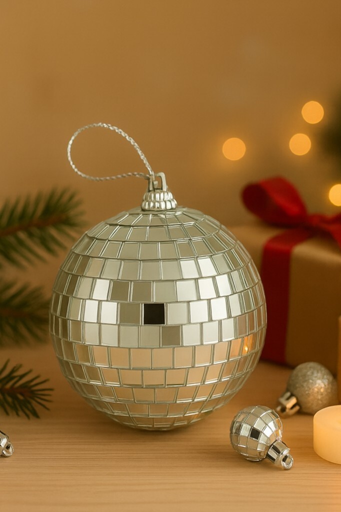 Beysüs 15 cm Cam Disko Topu parıltılı ayna mozaikleriyle ışıkları yansıtarak ortama enerjik ve şık bir hava katar. Yılbaşı süslemelerinde, parti dekorlarında veya evinizde dekoratif obje olarak kullanıma uygundur. Zarif boyutu sayesinde masalarda, vitrinlerde ve yılbaşı ağacında şık bir detay oluşturur. Ölçü: 15 cm.