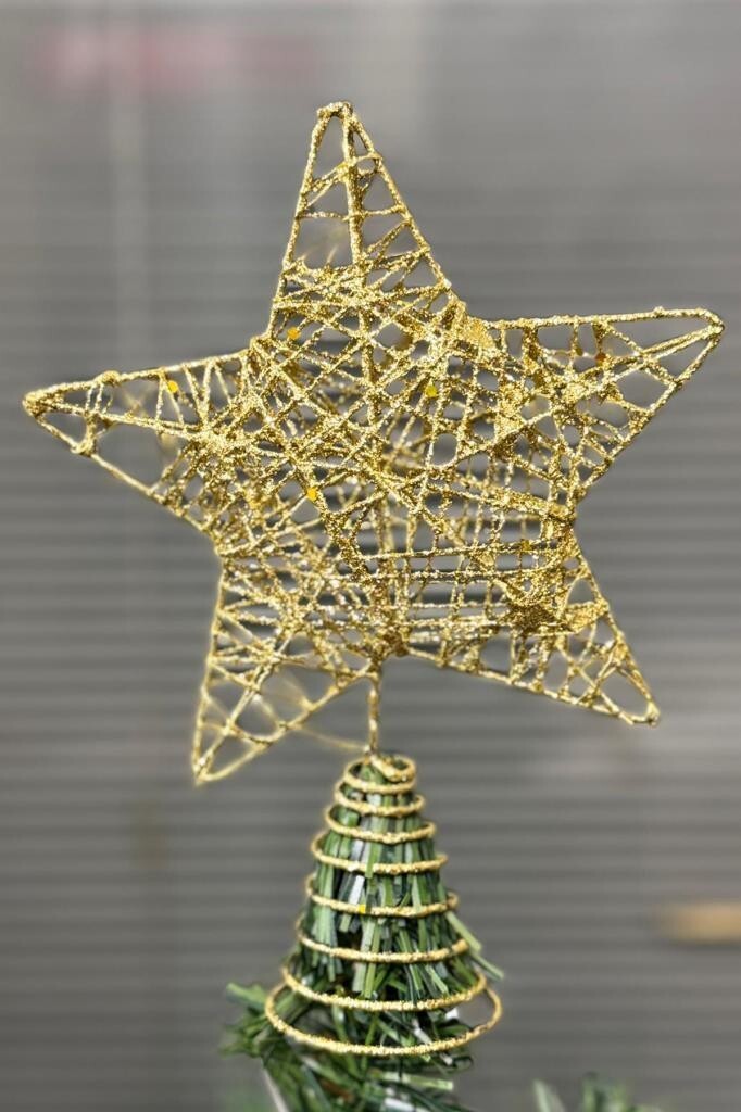 Beysüs Yılbaşı Çam Ağacı Tepeliği Tel Tepelik Gold Yılbaşı ağacınızı tamamlayacak parıltılı bir detay mı arıyorsunuz? 18 cm boyundaki Simli Tel Tepelik, çam ağacınızın en tepe noktasına ışıltılı bir dokunuş katmak için ideal! Parlak simli yapısı sayesinde gün ışığında ya da ışıklandırma altında göz alıcı bir görünüm sunar. Hafif ve esnek yapısıyla kolayca monte edilir. Yılbaşı ruhunu evinize taşımak için pratik, şık ve göz alıcı bir tercih!