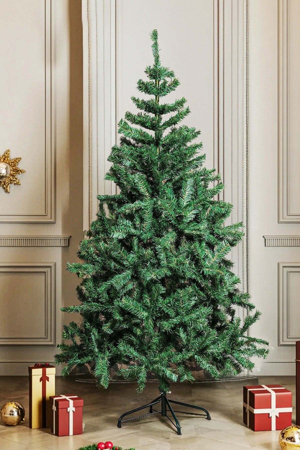 Beysüs 180 cm Yılbaşı Çam Ağacı, 520 adet sık ve dolu dal yapısıyla gerçek çam görünümü sunar. Dayanıklı malzemesiyle uzun yıllar kullanılabilir, kolay kurulum sistemi sayesinde kısa sürede hazırlanır. Ev, ofis, mağaza vitrinleri ve otel lobileri gibi tüm iç mekan süslemeleri için uygundur.