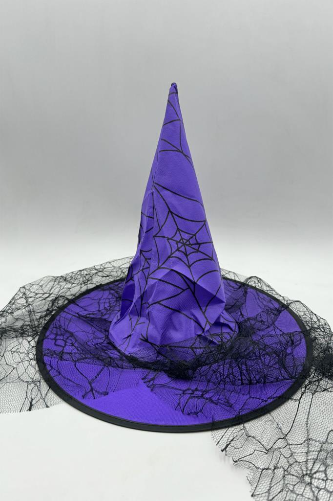 Beysüs Halloween Cadı Şapkası Mor Tüllü