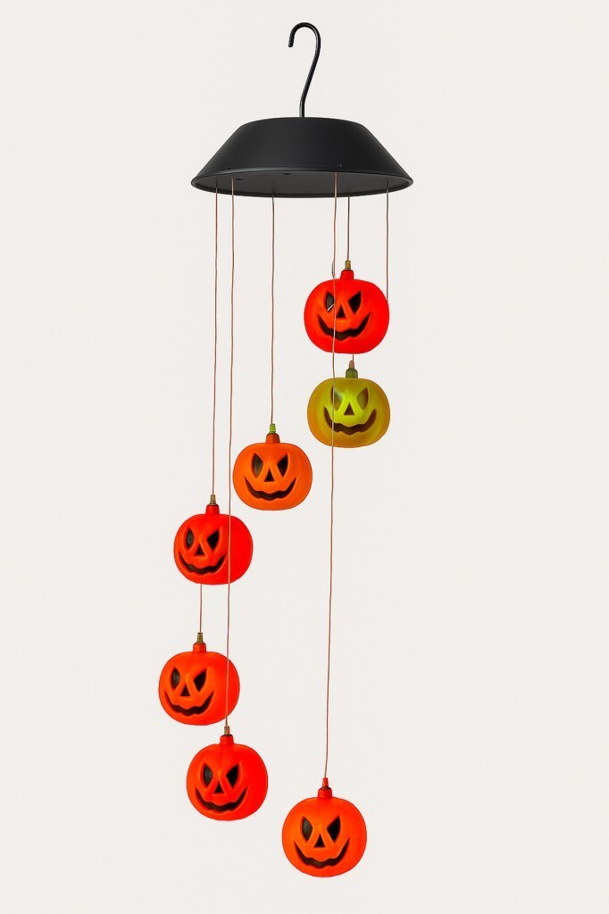 Beysüs Halloween Cadılar Bayramı Güneş Enerjili Renkli LED Işıklı Asma Balkabağı Dekor, 6 adet balkabağı figüründen oluşur. Güneş paneli sayesinde pil veya elektrik gerektirmez. Renkleri sürekli değişen LED ışıklar ile gece ortamına eğlenceli bir hava katar. Çengel dahil 75 cm uzunluğunda, ip hariç aparat uzunluğu 55 cm, genişliği 12 cm’dir. Her balkabağı figürü 8 cm boyutundadır. Bahçe, balkon, pencere ve kapı süslemeleri için idealdir.