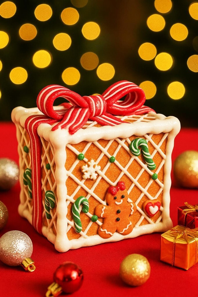 Yılbaşı atmosferine sıcaklık ve neşe katacak ışıklı dekoratif hediye kutusu modeli. 21 cm yükseklik, 17 cm en ve derinlik ölçülerine sahip bu ürün; kırmızı-beyaz şeritli büyük fiyonk, zencefil adam figürü, baston şekerler ve minik kalp detaylarıyla özenle tasarlanmıştır. İç kısmındaki ışıklar sayesinde hem gündüz hem gece şık bir görünüm sunar. Yılbaşı ağacı altına, masa üstüne veya vitrin dekoruna mükemmel uyum sağlar.
