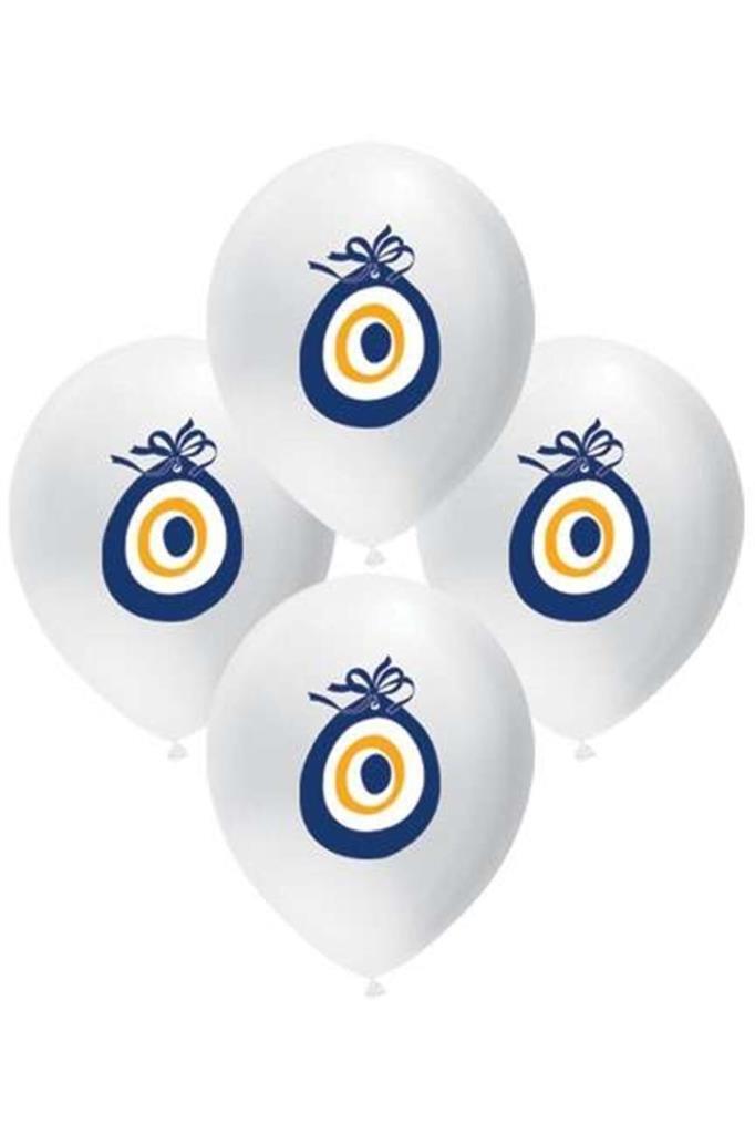 Beysüs Lateks Nazar Boncuğu Baskılı Balon Beyaz 10 Lu