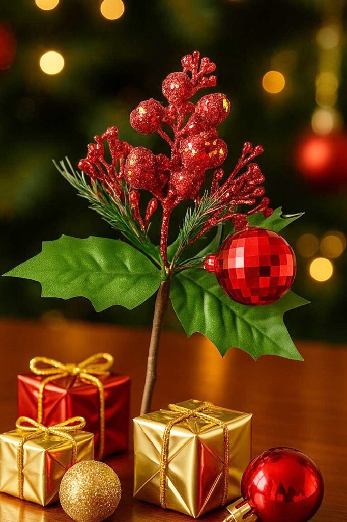 Beysüs Yılbaşı Ağacı Süsü, 23 cm uzunluğundaki toplu kokina dal tasarımıyla yılbaşı dekorasyonlarına şık ve göz alıcı bir hava katar. Üzerindeki kırmızı kokinalar, yaprak detayları ve doğal görünümlü yapısıyla yılbaşı ağacında, masa dekorlarında veya kapı süslerinde rahatlıkla kullanılabilir. Kompakt boyutuna rağmen dikkat çekici görünümüyle yılbaşı ruhunu yansıtır ve uzun süreli kullanım için dayanıklı malzemeden üretilmiştir.