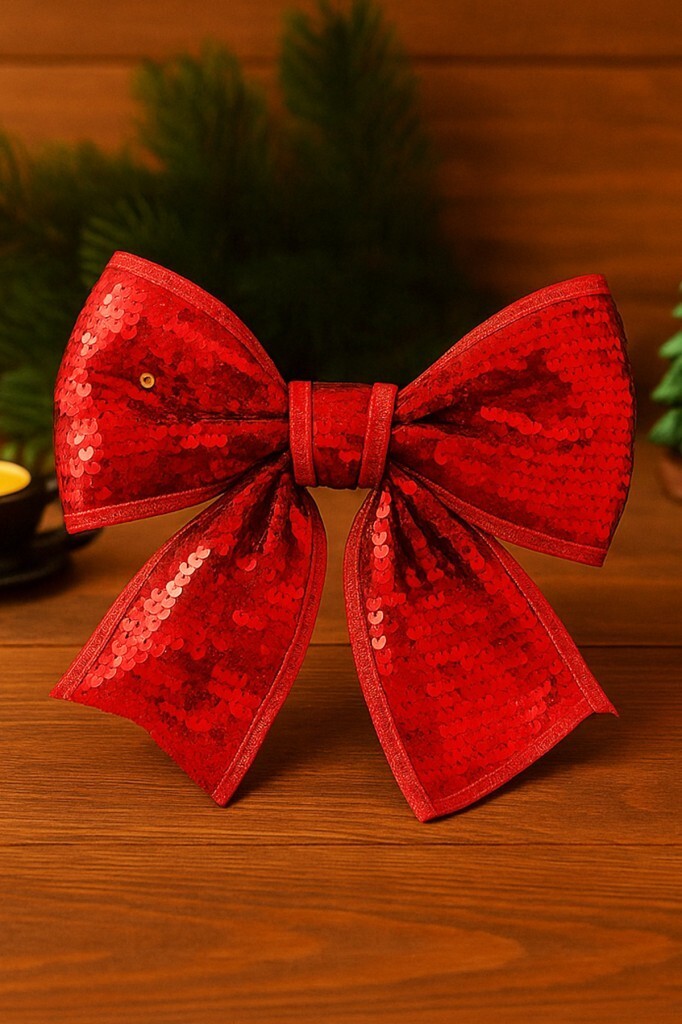 Beysüs Yılbaşı Ağacı Süsü 26 Cm Pul Payetli Kırmızı Fiyonk Beysüs Yılbaşı Ağacı Süsü 26 Cm Pul Payetli Kırmızı Fiyonk, yeni yıl dekorasyonuna şıklık katar. Parlak pul ve payet detaylarıyla ışığı yansıtarak göz alıcı bir görünüm sunar. Payetlerin bir yüzü kırmızı, diğer yüzü gold renkte olup, ışığa göre değişen etkileyici bir parlaklık verir. 26 cm boyutuyla yılbaşı ağaç süsü olarak dallara, kapı süslerine veya duvar dekorasyonlarına kolayca uygulanabilir. Kaliteli malzemesi sayesinde uzun süre formunu korur ve tekrar tekrar kullanılabilir.