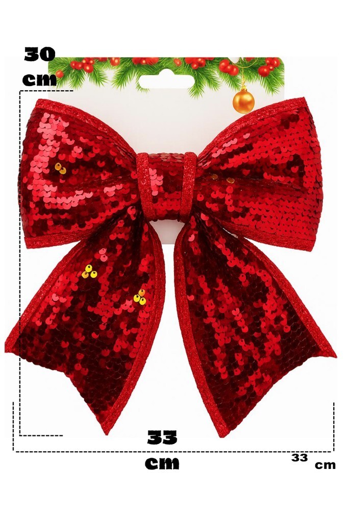 Beysüs Yılbaşı Ağacı Süsü 30 Cm Pul Payetli Kırmızı Fiyonk, yeni yıl dekorasyonuna şıklık katar. Parlak pul ve payet detaylarıyla ışığı yansıtarak göz alıcı bir görünüm sunar. Payetlerin bir yüzü kırmızı, diğer yüzü gold renkte olup, ışığa göre değişen etkileyici bir parlaklık verir. 30 cm boyutuyla yılbaşı ağaç süsü olarak dallara, kapı süslerine veya duvar dekorasyonlarına kolayca uygulanabilir. Kaliteli malzemesi sayesinde uzun süre formunu korur ve tekrar tekrar kullanılabilir.