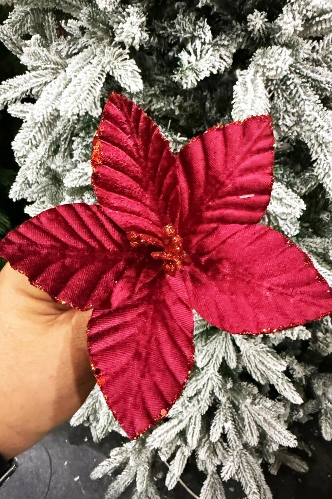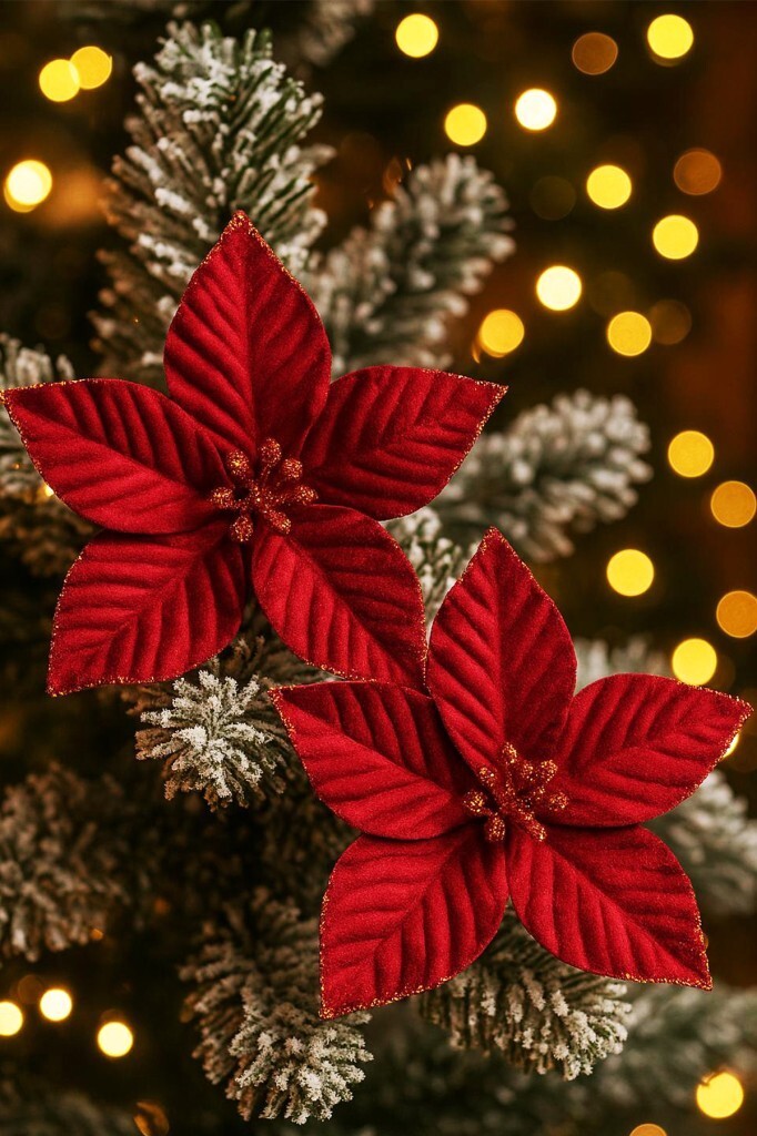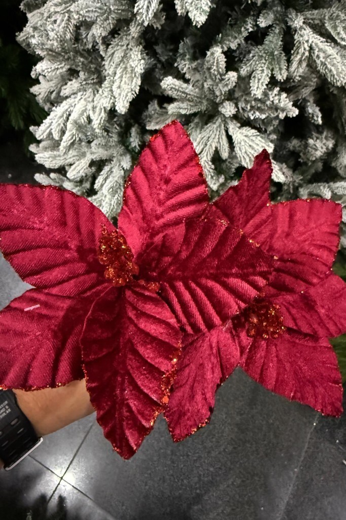 Beysüs Yılbaşı Ponsetya Çiçek Seti, koyu kırmızı tonlarıyla yılbaşı ağacınıza şık ve zarif bir hava katar. Bordoya çalan yaprak rengi ve kenarlarındaki kırmızı sim detaylarıyla dikkat çeken bu ponsetya çiçekleri, 18 cm genişliğiyle ağacınızda dolgun bir görünüm sağlar. 2’li set olarak sunulan ürün, yılbaşı ağacı süslemesinin yanı sıra kapı süsleri, masa dekorları ve farklı aranjmanlarda da kullanılabilir. Esnek yapısı sayesinde kolayca monte edilebilir ve uzun süreli kullanım için dayanıklıdır.