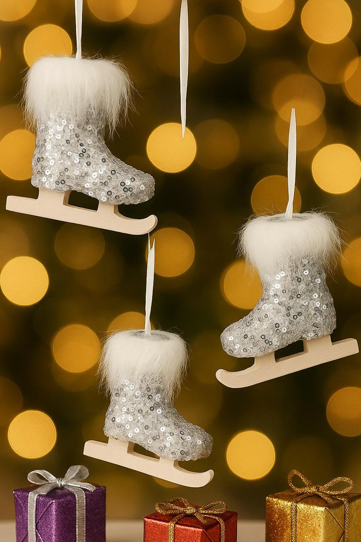 Beysüs Yılbaşı Çam Ağacı Süsü 3’lü Gümüş Buz Pateni 12 cm Parlak gümüş rengi ve kürklü detayıyla yılbaşı ağacınıza zarif ve kış temalı bir ışıltı kazandırır. Üçlü set halinde sunulan bu süsler, buz pateni şeklindeki şık tasarımıyla yılbaşı ruhunu evinize taşır. Ağacın dallarında, vitrinlerde veya dekor köşelerinde kullanılabilir. Dayanıklı malzeme yapısı sayesinde her yıl ilk günkü ışıltısıyla yeniden süslemelerinize eşlik eder.