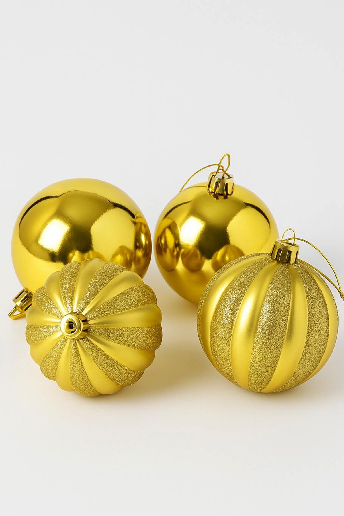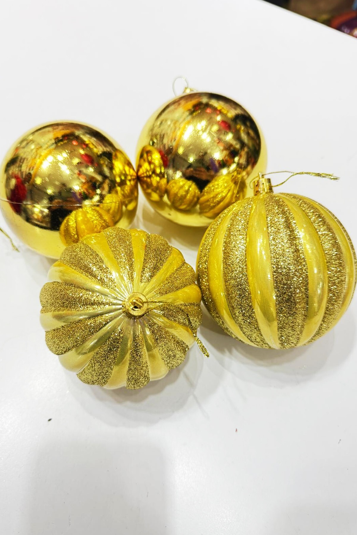 Klasik yılbaşı ışıltısını yansıtan altın rengiyle ağacınıza sıcak ve şık bir atmosfer kazandırır. 10 cm boyutundaki dört adet top süs, parlak ve simli yüzey yapısıyla ışığı mükemmel şekilde yansıtır. Parlak altın tonu, diğer süslerle kolayca uyum sağlar ve dekorasyonunuza lüks bir dokunuş katar. Dayanıklı ve hafif malzemesi sayesinde her yıl güvenle kullanılabilir.