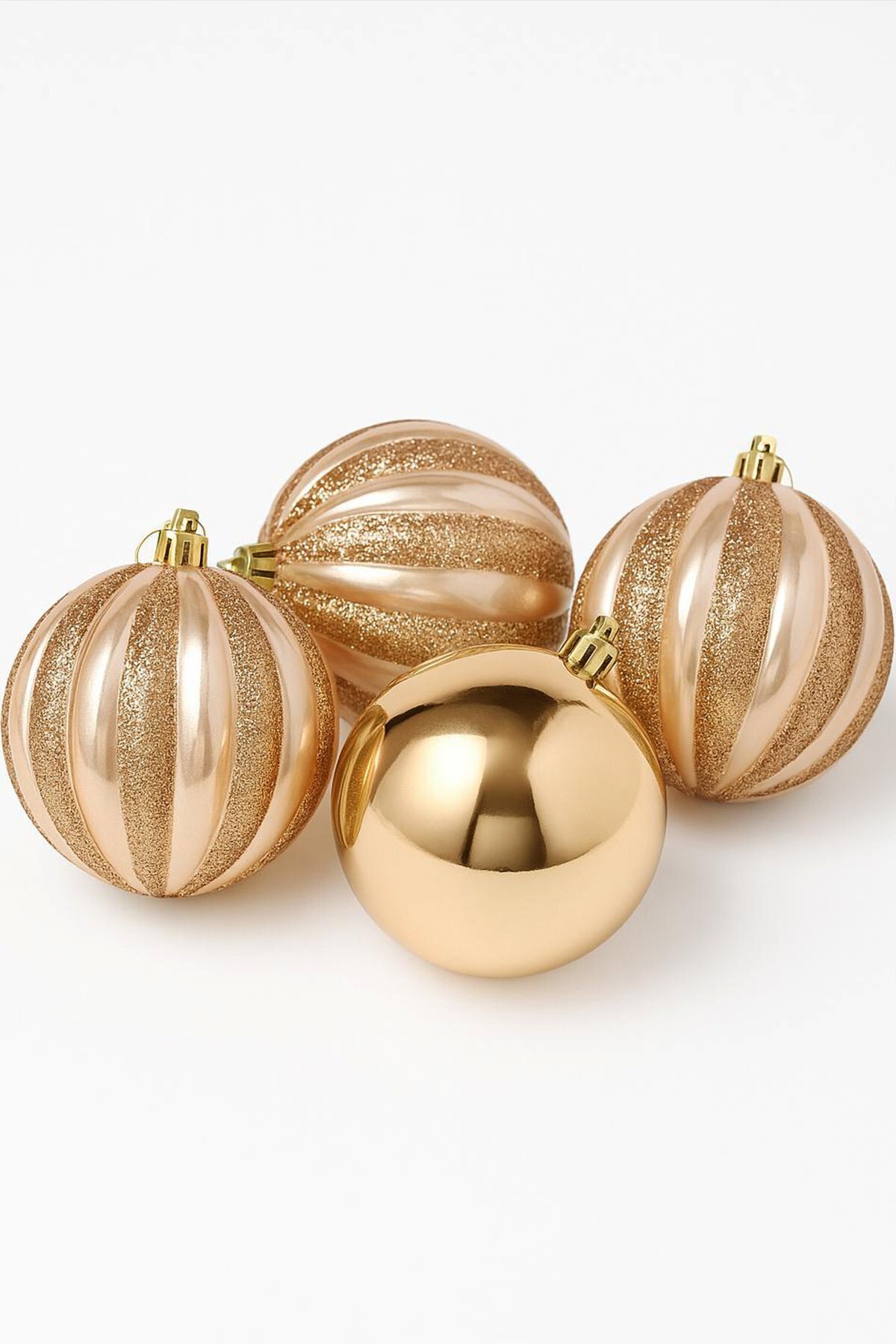 Zarif ve ışıltılı rose gold tonuyla yılbaşı ağacınıza sıcak bir parıltı kazandırır. 10 cm boyutundaki dört adet top süs, parlak ve simli yüzey yapısıyla ışığı kusursuz şekilde yansıtır. Modern ve sofistike görünümü sayesinde çam ağacından masa süslemelerine kadar her dekorla uyum sağlar. Dayanıklı malzeme yapısı sayesinde her yıl ilk günkü ışıltısını korur.