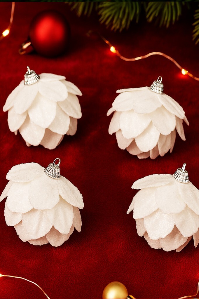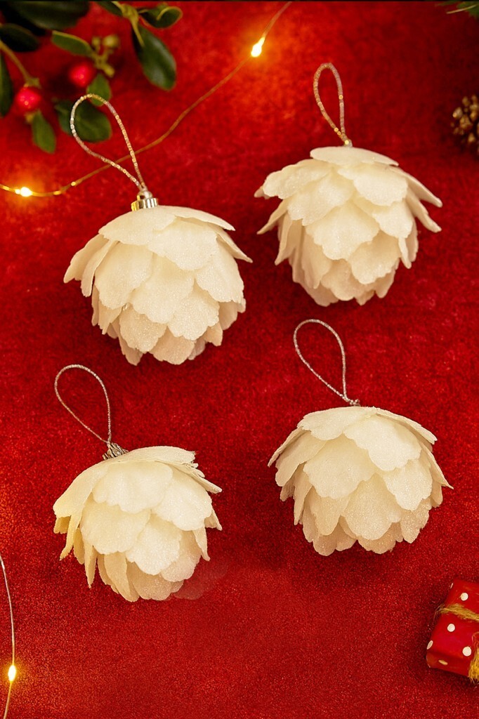 Beysüs Yılbaşı Çam Ağacı Süsü Çiçek Beyaz 4 Lü 6 cm 6 cm boyutundaki beyaz çiçek formunda yılbaşı süsleri, 4’lü set halinde sunulmaktadır. Kat kat yaprak görünümlü tasarımıyla farklı ve zarif bir hava katar. Parlak ve ışıltılı yüzeyi sayesinde çam ağacınızda ışıkları güzelce yansıtır. Hem ağacınızda hem de masa üstü dekorlarınızda şık bir tamamlayıcı olarak kullanılabilir.