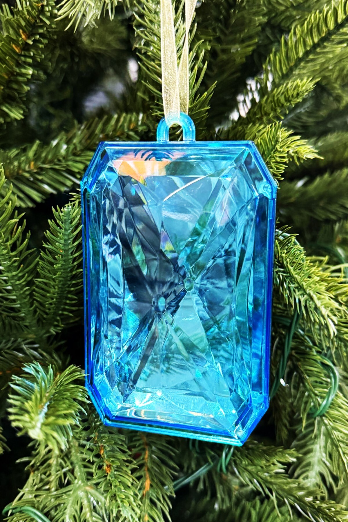 Ürün plastik malzemeden üretilmiş olup kristal dikdörtgen kesim görünümü sayesinde yılbaşı ağacına modern ve premium bir parlaklık katar. İç kısmındaki mavi ton, ışığı kırarak derin ve soğuk bir ışıltı oluşturur. Keskin hatlı dikdörtgen formu sayesinde dikkat çekici bir tasarıma sahiptir. Ürünün yüksekliği 10,5 cm, genişliği 7 cm’dir. Hafif yapısı sayesinde çam ağacı dallarına kolayca asılabilir ve mavi ağırlıklı yılbaşı temalarında güçlü bir vurgu sağlar.