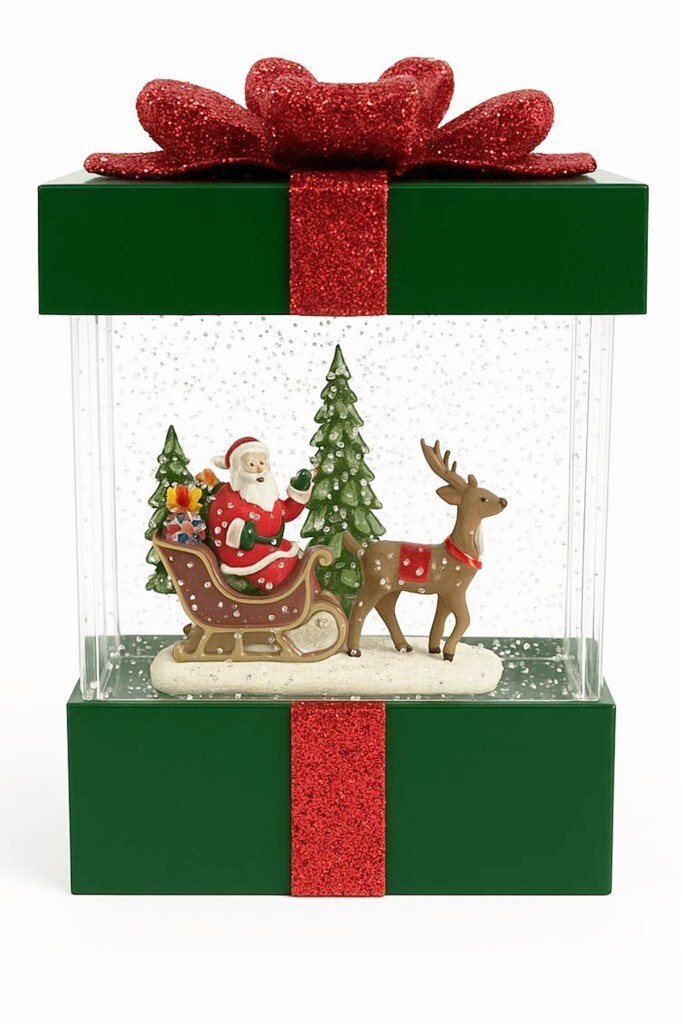 17x12 cm ölçülerindeki püskürtmeli kar küresi, ışıklı ve müzikli özelliğiyle yılbaşı dekorasyonlarına masalsı bir hava katar. İçinde çam ağaçları arasında ren geyiğiyle birlikte duran Noel Baba figürü yer alır.