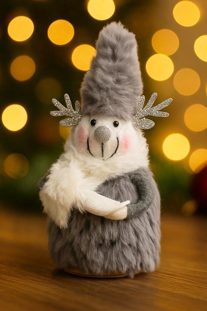 Beysüs Yılbaşı Çam Ağacı Süsü Masa Dekoru Şans Yumağı Gri Geyik 14 cm boyutunda dekoratif “Şans Yumağı” figürü. Gri gövdesi, uzun şapkası, beyaz atkısı ve gülümseyen yüzüyle sevimli bir görünüme sahiptir. Simli boynuz detaylarıyla yılbaşı süslemelerine farklı bir hava katar. Masa üstü dekorasyonlarında, vitrin düzenlemelerinde veya yılbaşı konseptli köşelerde kullanılabilir. Yumuşak dokulu yapısı sayesinde sıcak ve samimi bir atmosfer oluşturur.