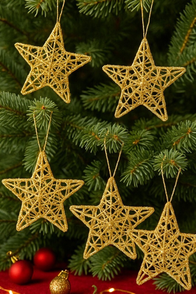 Beysüs Yılbaşı Çam Ağacı Süsü Tel Yıldız Gold 6 Lı 8 cm Yılbaşı ağacınızı zarif bir şekilde süslemek için tasarlanmış 8 cm boyutundaki altın renkli tel yıldızlar, set halinde 6 adet olarak sunulmaktadır. Hafif yapısıyla kolayca asılır ve şık tasarımıyla yılbaşı atmosferini tamamlar.