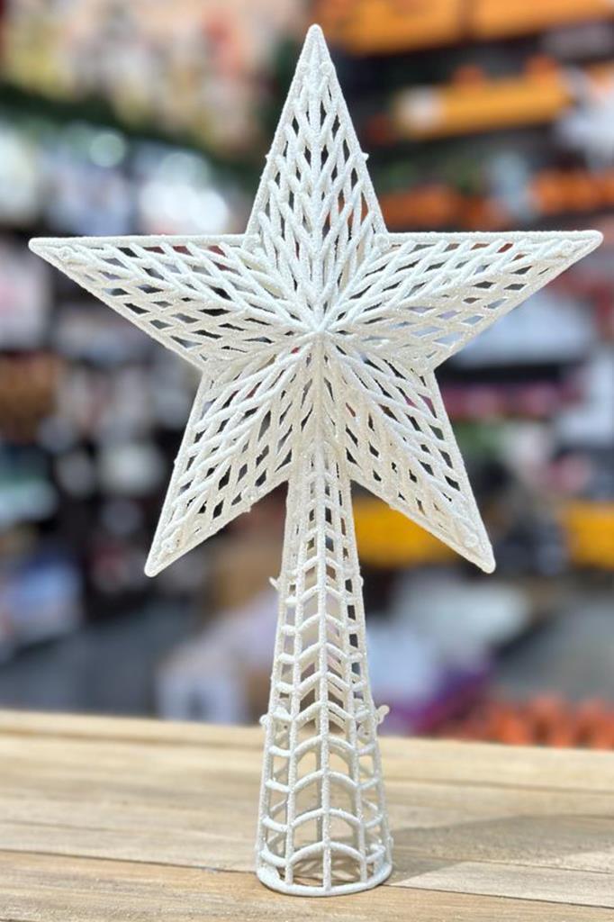 Beysüs Yılbaşı Çam Ağacı Süsü Tepe Yıldızı Ayaklı Beyaz 27 cm