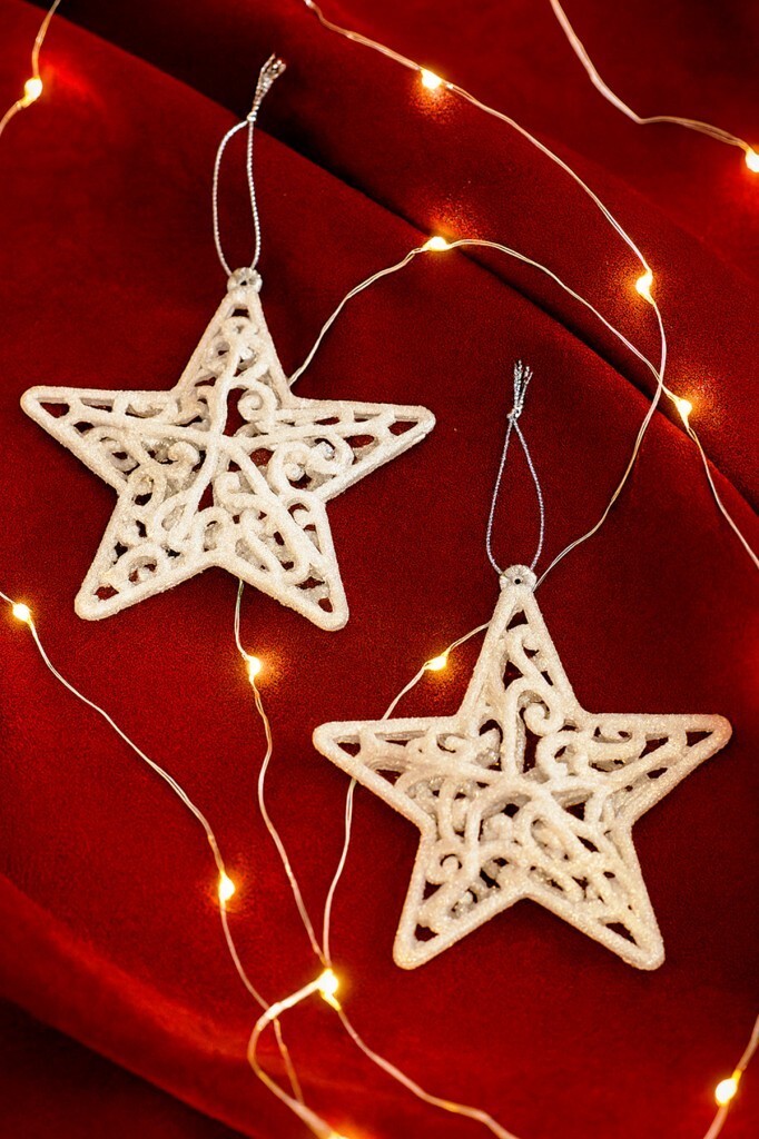10x10 cm ölçülerindeki beyaz desenli yılbaşı yıldız süsleri, şık tasarımıyla ağacınıza zarif bir görünüm kazandırır. İkili set halinde sunulan ürün, hafif yapısı sayesinde kolayca asılabilir. Parlak ve simli dokusuyla ışığı yansıtarak göz alıcı bir ambiyans oluşturur. Yılbaşı ağacında, dekoratif aranjmanlarda veya masa süslemelerinde kullanılabilir.