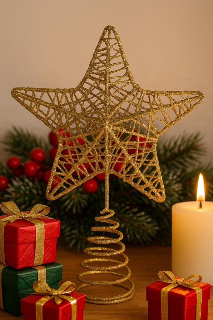 Beysüs Yılbaşı Çam Ağacı Tepeliği Tel Tepelik Gold Yılbaşı ağacınızı tamamlayacak parıltılı bir detay mı arıyorsunuz? 18 cm boyundaki Simli Tel Tepelik, çam ağacınızın en tepe noktasına ışıltılı bir dokunuş katmak için ideal! Parlak simli yapısı sayesinde gün ışığında ya da ışıklandırma altında göz alıcı bir görünüm sunar. Hafif ve esnek yapısıyla kolayca monte edilir. Yılbaşı ruhunu evinize taşımak için pratik, şık ve göz alıcı bir tercih!