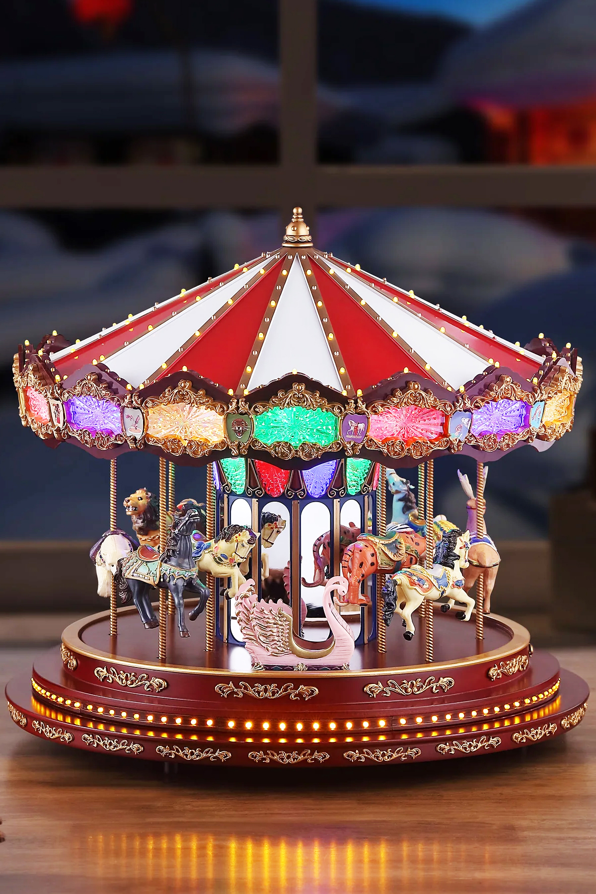 Mr. Christmas koleksiyonuna ait bu lüks carousel, yüksek kalite malzemesi, detaylı işçiliği ve göz alıcı tasarımıyla uzun yıllar boyunca keyifle sergilenebilecek değerli bir dekoratif parçadır.