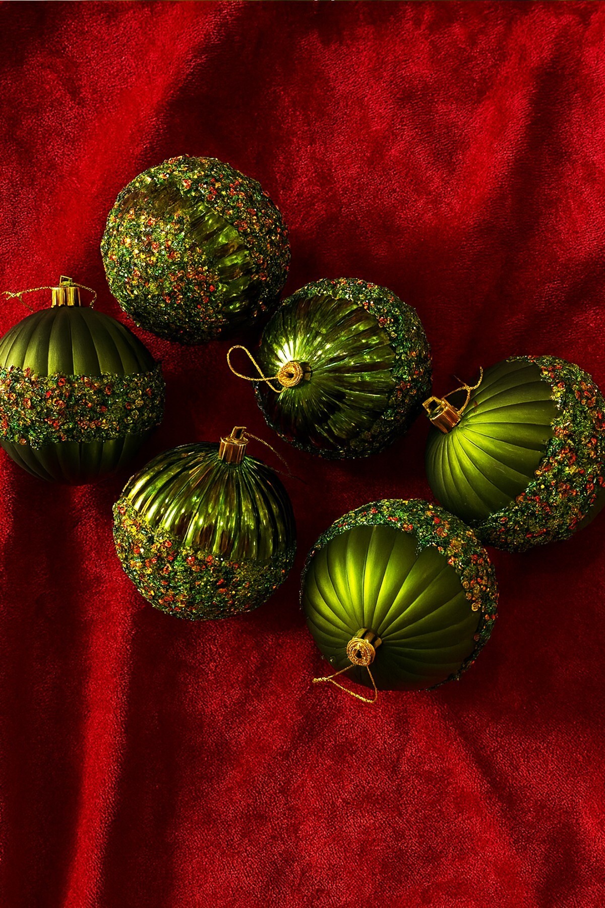 Beysüs pullu yeşil yılbaşı çam ağacı süs seti, klasik yılbaşı rengini modern bir ışıltıyla buluşturur. 3 adet mat ve 3 adet parlak yüzeyli toplardan oluşan set; üzerlerindeki ince pul detaylarıyla ışığı farklı açılarda yansıtarak ağacınıza canlı, dengeli bir görünüm kazandırır. 8 cm boyutundaki dayanıklı plastik süsler, doğal yeşilin tonuyla sade ama etkileyici bir yılbaşı atmosferi yaratır.