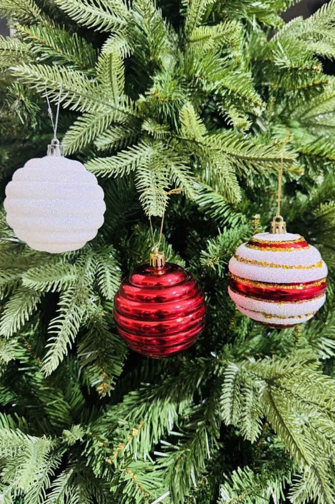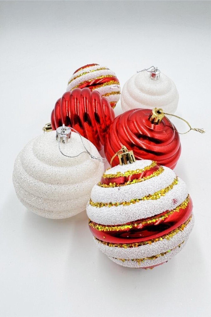 Beysüs Yılbaşı Çam Ağacı Süsü Parlak Özel Kırmızı Beyaz Holiday Cici Top 8 cm 6'lı