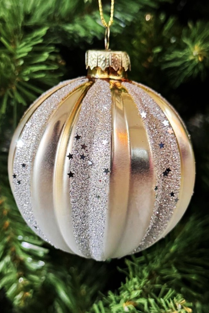 Beysüs Yılbaşı Çam Ağacı Süsü Parlak Özel Yakamoz Gold Holiday Cici Top 8cm 3'lü 8 cm ölçüsünde camdan üretilmiş yılbaşı ağacı süs topları, 3’lü set halinde sunulmaktadır. Gold ve gümüş sim detaylarıyla ışığı yansıtarak şık bir görünüm kazandırır. Yıldız desenli parlak yüzeyiyle yılbaşı ağacınıza zarafet ve ışıltı katar. Dayanıklı cam yapısı sayesinde uzun süre kullanılabilir. Yalnızca ağaç süsü olarak değil, dekoratif aranjmanlarda da kullanılmaya uygundur.
